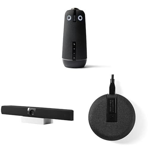 Meeting Owl 4+, Owl Bar et Expansion Mic – Pack Intelligent de visioconférence multicaméra 4K à 360° (focalisation sur l’intervenant, Passage Intelligent d’Une caméra à l’Autre, appairage sans Fil)