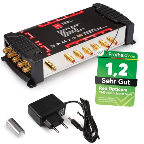 RED OPTICUM OMS 5/12 Pro TRQ Commutateur Multiple pour la réception d'une Position Satellite jusqu'à 12 récepteurs/Contacts plaqués Or / 4 K, 3D, UHD/Quattro et LNB Quad
