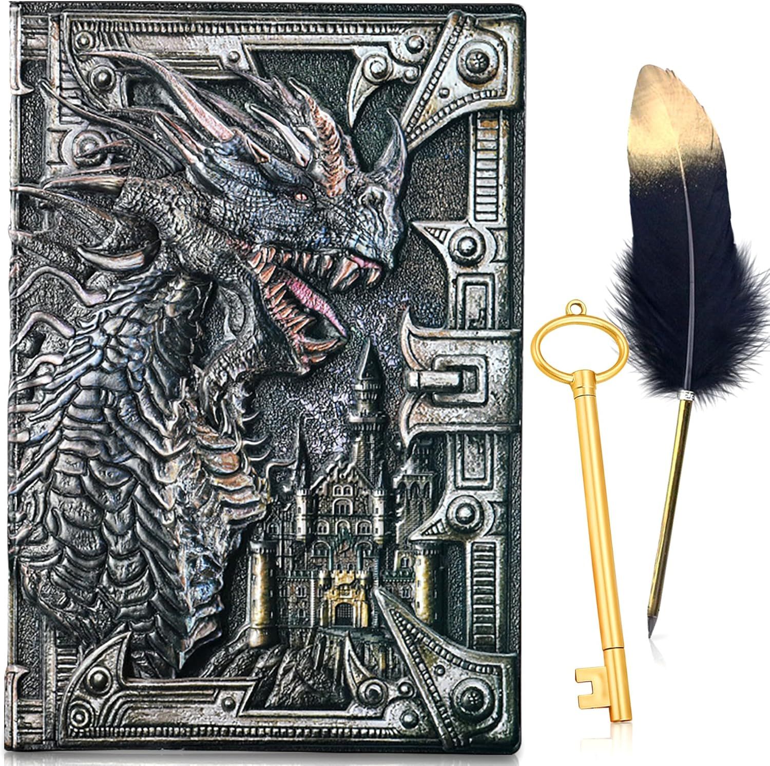Vintage Dnd Cahier Dragon Carnet De Notes Journal Dnd Dragon En Silver 3d En Relief Sur Faux Cuir Pour Donjons Et Dragons Dungeons & Dragons D&d. Accessoires Jdr Pour Mj