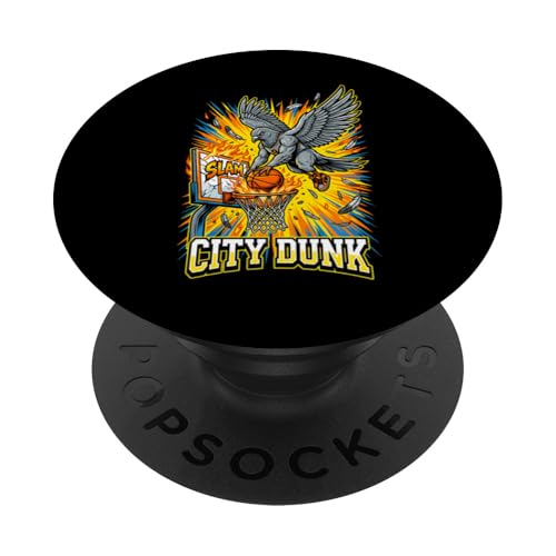 City Dunk Pigeon Basketball Slam Funny Bird PopSockets PopGrip Adhésif