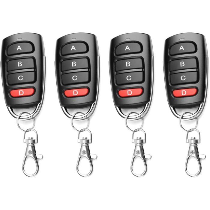 Ashopfun Duplicateur de télécommande 4 en 1, 4 touches, copie de code fixe et télécommande à code tournant (4 pièces)