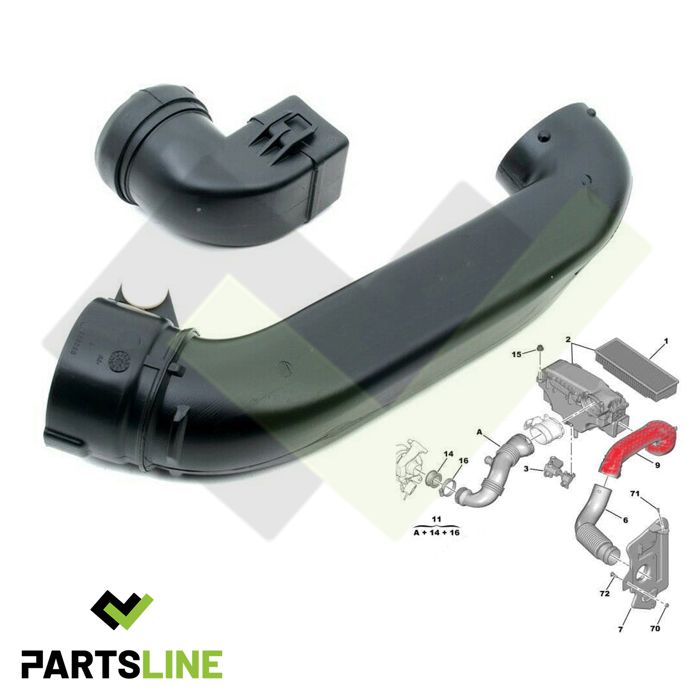 Tuyau Durite Admission Air Côté Gauche pour BERLINGO C2 C3 C4 206 207 3008 307 308 407 5008 PARTNER 1.6 HDI - 1434C1 9656673480