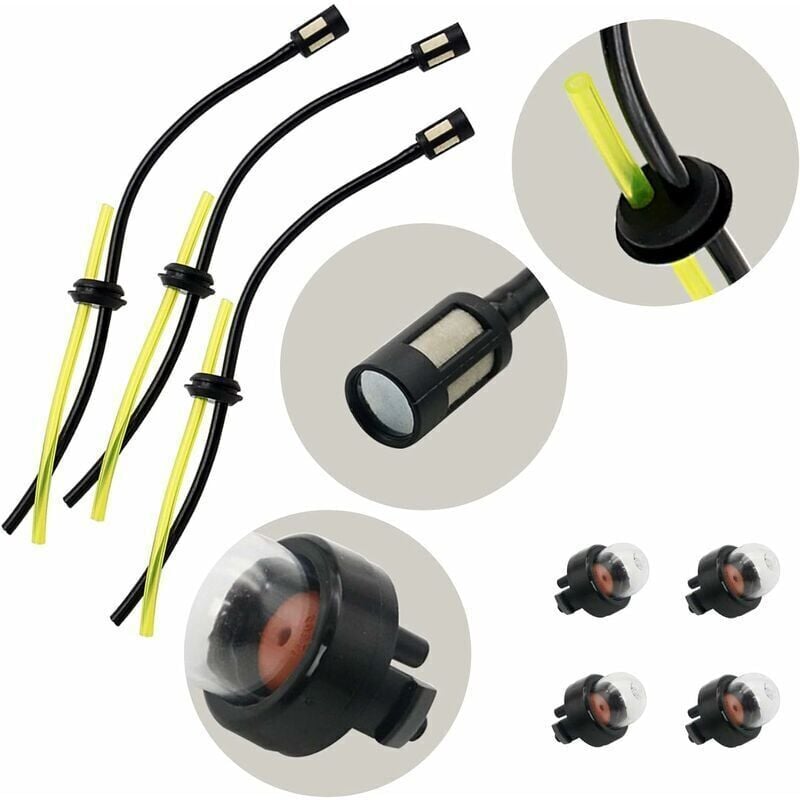 Kit Durite Essence Debroussailleuse, Lot de 3 Tuyaux de Carburant Universels, avec 2 Filtre et 2 Ampoules d’Apprêt, 4 Pompes D'amorçage pour