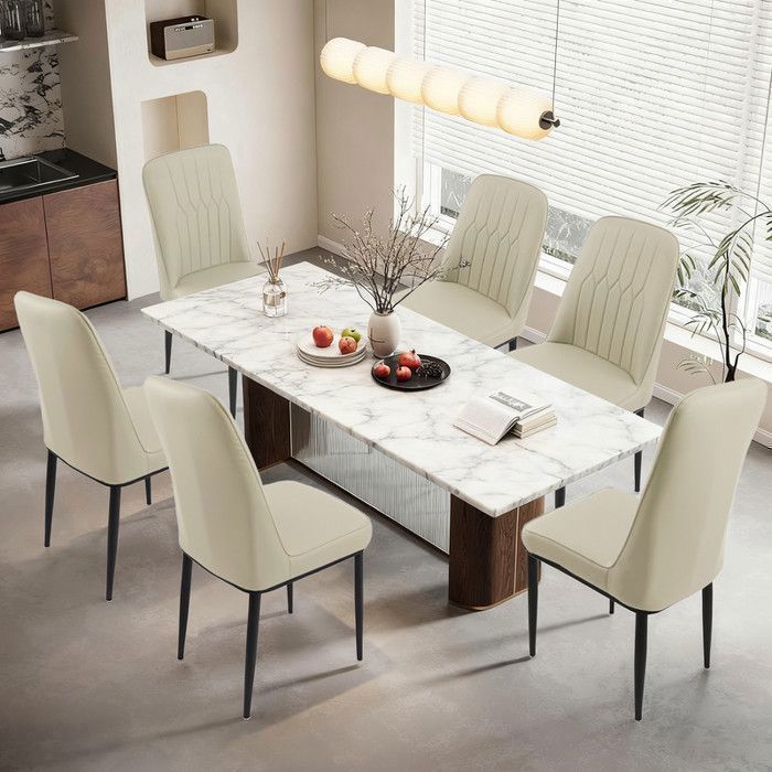 DURRAFY Chaises de salle a manger lot Coussin souple avec pieds en métal Chaises de cuisine à dossier haut-blanc- Lot de 6