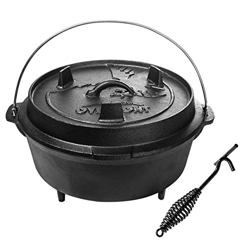 OVERMONT Dutch Oven Marmite Fonte Four Néerlandais avec Lève-Couvercle pour Camping, Cuisson Barbecue