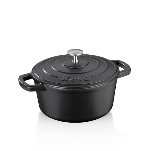 kela Bräter Gusseisen rund 2,5 Liter, Dutch Oven CALIDO, Induktion Gussbräter mit Deckel, Gusseisen Topf Brot backen, emailliert, schwarz