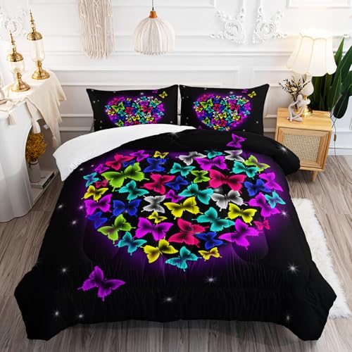 Couette Papillon Coloré Edredon Microfibres Couette Epaisse Hiver Chaude Edredon Duvet 4 Saisons Couettes Lavable Duvet Respirable Léger Édredon+2 Taies d'oreiller(50x75cm) 228x228cm