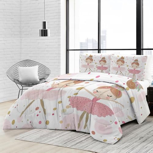 Couette 173 x 229 cm Enfant, Duvet 4 Saisons - Réversible Rose Lavable Decoration Chambre pour Adulte, Mignon Amour Chaussons de Danse Imprimée et 2 Taies d'oreiller 65x65 cm