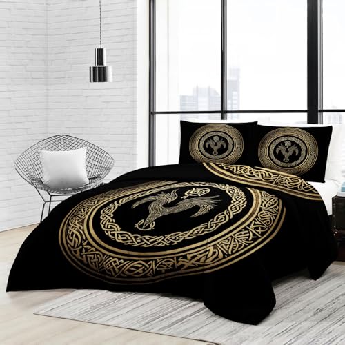 Couette 173 x 229 cm Enfant, Duvet 4 Saisons - Réversible Noir Lavable Decoration Chambre pour Adulte, Ancien Traditionnel Cercle Symbole Viking Imprimée et 2 Taies d'oreiller 65x65 cm