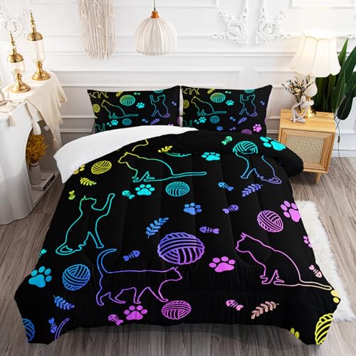 Couette Impression De Chat Noir Edredon Microfibres Couette Epaisse Hiver Chaude Edredon Duvet 4 Saisons Couettes Lavable Duvet Respirable Léger Édredon+2 Taies d'oreiller(50x75cm) 260x230cm