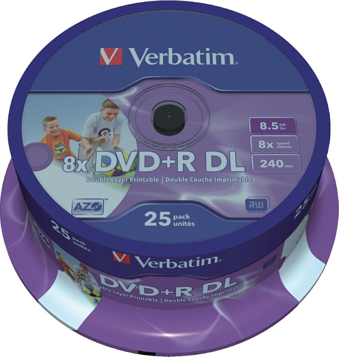 DVD+R 8X Double Couche Imprimable, 100 pièces en cakebox