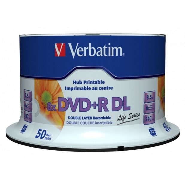 Verbatim DVD+R DL 8,5Go 8x Pack de 50 Spindle Life Series Large Jet d'Encre
