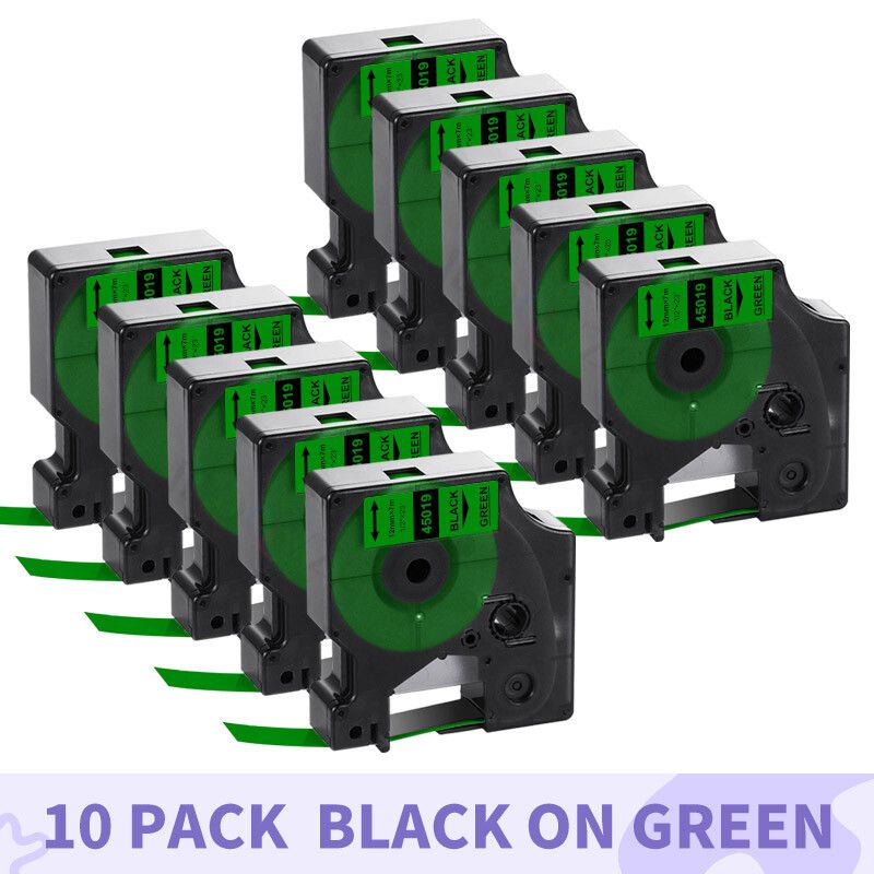 IBOQVZG-Étiqueteuse pour Dymo D1,Label Manager,Rubans,10PK,12mm,45010,45013,45018,45022,45021,LM,120P,160,210D - Type 10PK Black on Green-19mm