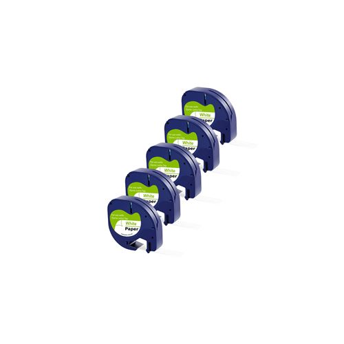 Lot de 5 Rubans Blanc compatible Dymo LetraTag - Etiquette papier 91200 12mm x 4m Phonillico®