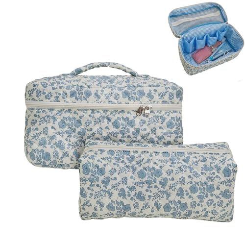 SDSFGX Lot de 2 sacs de voyage pour outils de cheveux pour femme - Étui de voyage matelassé à motif floral pour Dyson Airwrap Puffy - Trousse de maquillage de voyage, Motif floral bleu., Trousse de