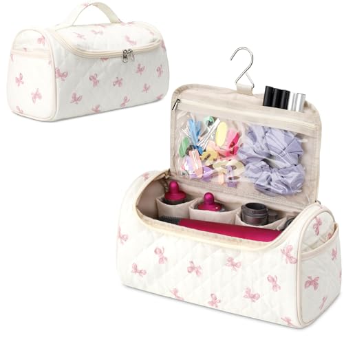 Linpr Sac de Rangement de Voyage, Adapté à Dyson Airwrap Styler/Airstrait/Shark Flexstyle, Étui de Portable avec Crochet Compatible pour Lisseur, Sèche-Cheveux, Bigoudis et Accessoires (Ours Beige)