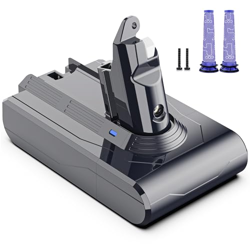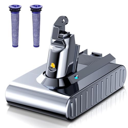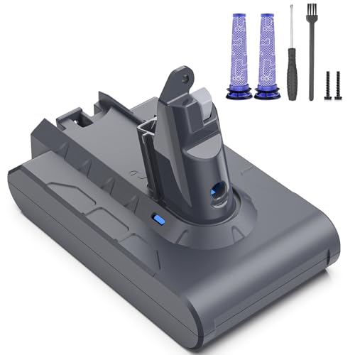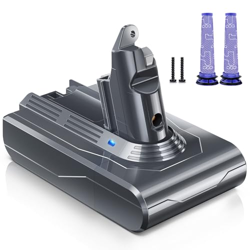 6.0Ah Batterie pour Dyson V6, 6000mAh Batterie Compatible avec Dyson V6 DC62 SV03 DC58 DC59 DC61 DC72 DC74 SV06 SV07 SV09 SV05 avec 2 Filtres