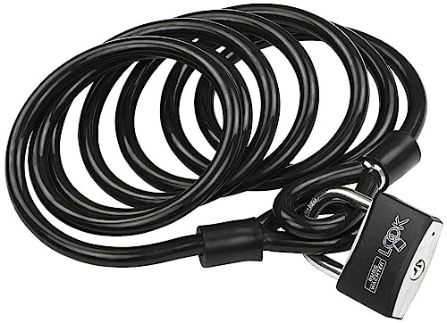 BURG-WÄCHTER Sicherheitskabel mit Vorhangschloss, Extralanges Spiralkabel, Motorrad, E-Scooter, Gartenmöbel, 750 250 + 402/50, Schwarz, 2,5 m