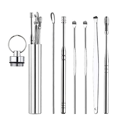 WANGX Innovative Spring Ear Wax Cleaner Tool Set Stainless Steel Ear Pick Ear Wax Removal Kit Ear Curette Cleaner with Storage Box and Cleaning Brush (6PCS A)