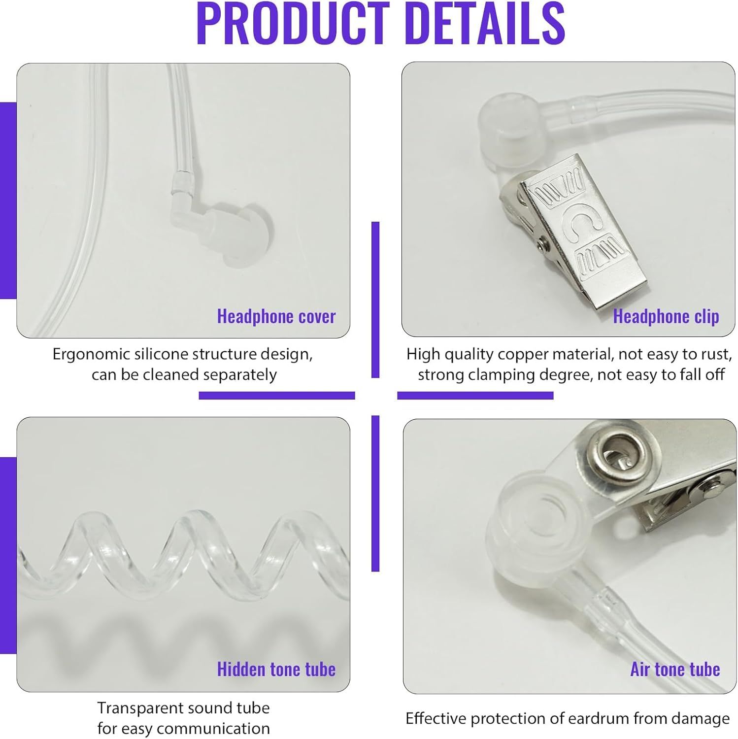 Walkie Talkie Earpiece,Air Tube Headphones,Clear Acoustic Tube Replacement,In-Ear Earplugs,Acoustic Earpiece for Two-Way Radio,Headphones,Walkie Talkie