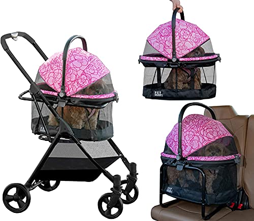 Pet Gear Système de voyage 3 en 1, la poussette View 360 se transforme en porte-bagages et siège rehausseur avec technologie Easy Click N Go, pour petits chiens et chats, 4 couleurs, nouveau motif