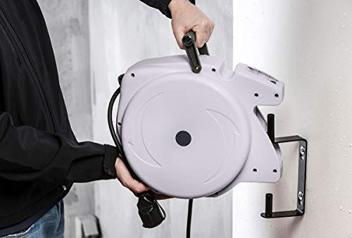 as - Schwabe Enrouleur de câble automatique 18 m H07RN-F 3G1,5, avec fonction Easy to Go, pivotant à 180°, fiche de contact de protection et câble d'alimentation de 2 m avec raccord de contact de