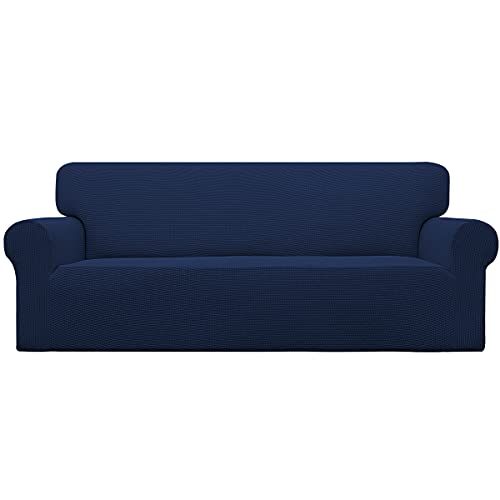 Easy-Going Housse de canapé extensible - 1 pièce - Protection de meubles douce avec élastique en bas pour enfants, tissu jacquard polyester élasthanne, petits carreaux (canapé surdimensionné, bleu marine)