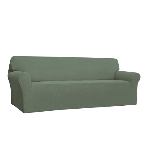 Easy-Going Housse de canapé 4 Places Extensible - Protection de Meubles Doux avec élastique en Bas - pour Enfants - Tissu Jacquard Polyester élasthanne à Petits Carreaux - Taille XXL - Vert grisâtre