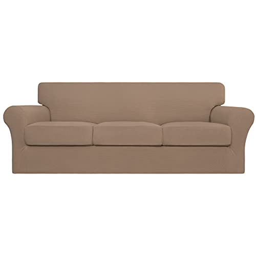 Easy-Going Housse de canapé 4 pièces Extensibles Douces et lavables pour 3 Coussins de canapé séparés – Protection de Meubles élastiques pour Animaux domestiques (canapé, Chameau)