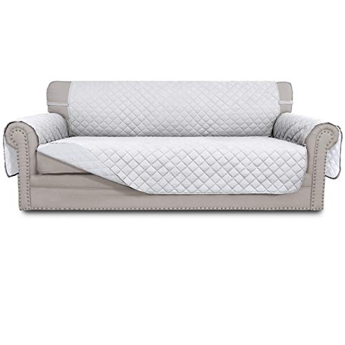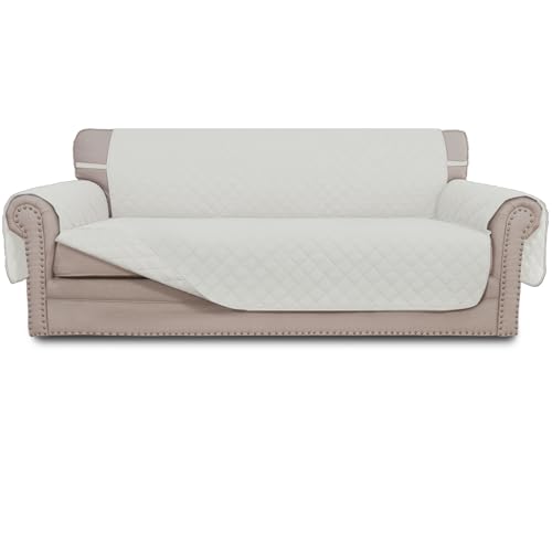 Easy-Going Housse de canapé réversible résistante à l'eau avec bâtons de mousse et sangles élastiques - Protection des meubles - Pour animaux de compagnie, enfants, chiens, chats (canapé, blanc/blanc)