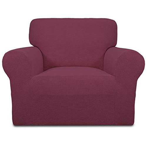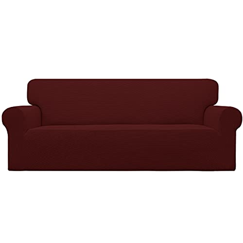 Easy-Going Housse de canapé extensible 1 pièce pour canapé - Protection de meubles doux avec élastique en bas pour enfants, tissu jacquard élasthanne, petits carreaux (canapé surdimensionné, bordeaux)