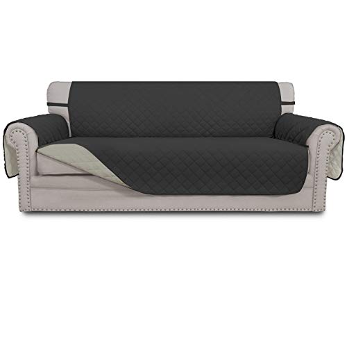 Easy-Going Housse de canapé réversible 4 places résistante à l'eau avec bâtons de mousse et sangles élastiques - Protection des meubles - Pour animaux de compagnie, enfants, chiens, chats (taille XXL,