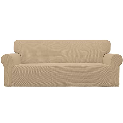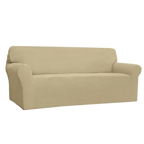 Easy-Going Housse de canapé 4 Places Extensible - Protection de Meubles Doux avec élastique en Bas - pour Enfants - Tissu Jacquard Polyester élasthanne à Petits Carreaux - Taille XXL - Beige