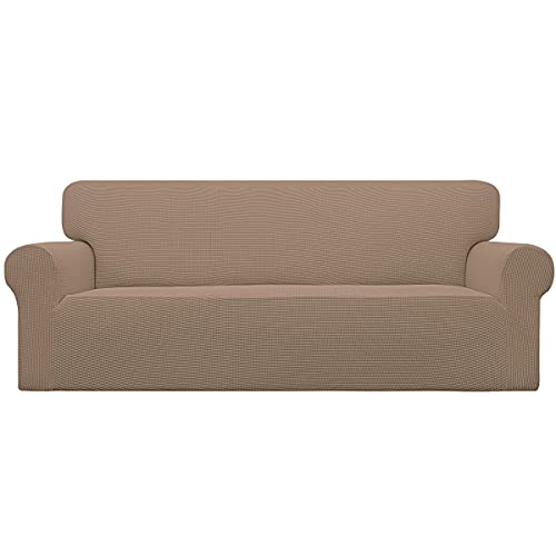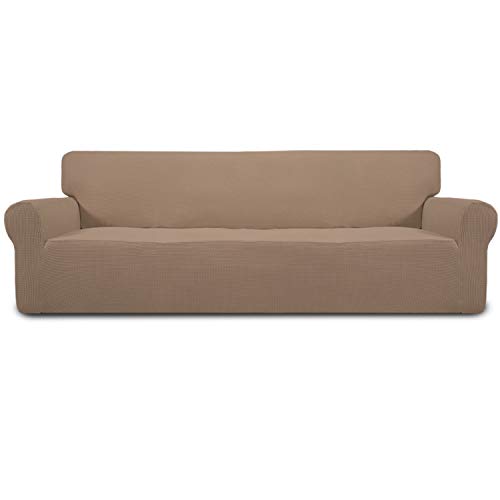 Easy-Going Housse de canapé extensible surdimensionnée 1 pièce pour canapé - Protection de meubles doux avec élastique en bas pour enfants, tissu jacquard élasthanne, petits carreaux (taille XL, café)