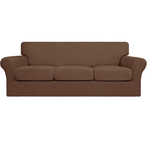 Easy-Going Lot de 8 housses de canapé inclinables 3 places pour chiens – Housse de canapé extensible pour canapé à 3 coussins, protection lavable de meubles avec élastique (canapé inclinable, chocolat