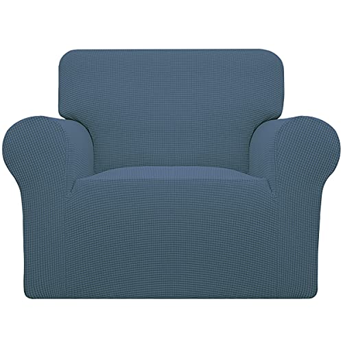 Easy-Going Housse de canapé Extensible – 1 pièce – Housse de Protection pour Meubles avec élastique en Bas pour Enfants, Tissu Jacquard Polyester élasthanne à Petits Carreaux (Chaise, Pierre Bleue)