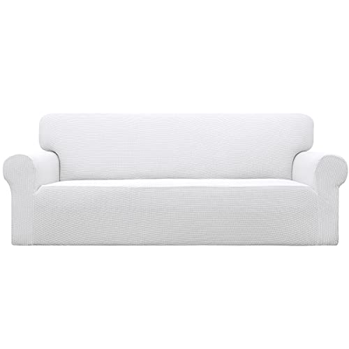 Easy-Going Housse de canapé Extensible 1 pièce pour canapé - Protection de Meubles Doux avec élastique en Bas pour Enfants, Tissu Jacquard élasthanne, Petits Carreaux (canapé surdimensionné, Blanc