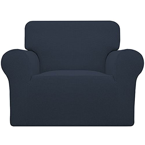 Easy-Going Housse de Fauteuil Extensible 1 pièce pour canapé - Protection de Meubles Doux avec élastique en Bas pour Enfants - Tissu Jacquard élasthanne à Petits Carreaux (Chaise, Bleu Marine)