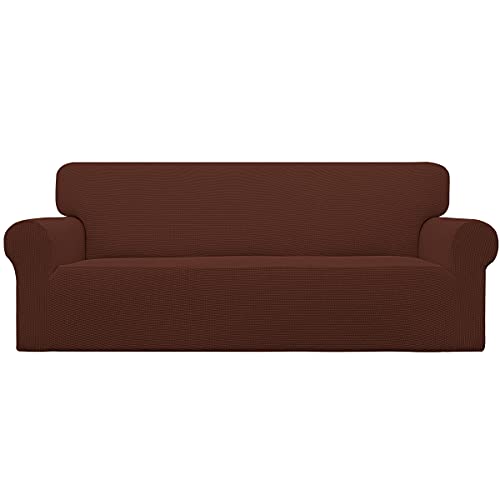 Easy-Going Housse de canapé extensible 1 pièce pour canapé - Protection de meubles doux avec élastique en bas pour enfants, tissu jacquard élasthanne, petits carreaux (canapé surdimensionné, chocolat)