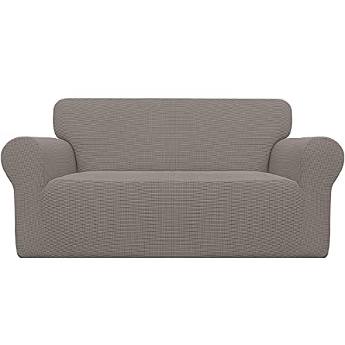 Easy-Going Lot de 2 Housses de canapé Extensibles en Microfibre – Spandex Doux et ajusté, Lavable Protection de Meubles avec élastique en Bas pour Enfants, Animaux domestiques (Causeuse, Gris Clair)