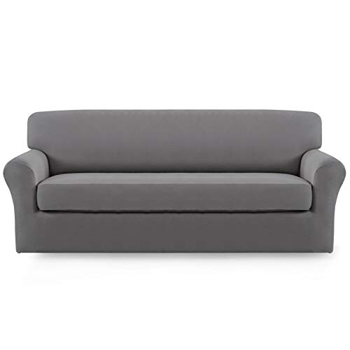 Easy-Going Lot de 2 Housses de canapé Extensibles en Microfibre – Spandex Doux et ajusté, Lavable Protection de Meubles avec élastique en Bas pour Enfants, Animaux domestiques (canapé, Gris foncé)