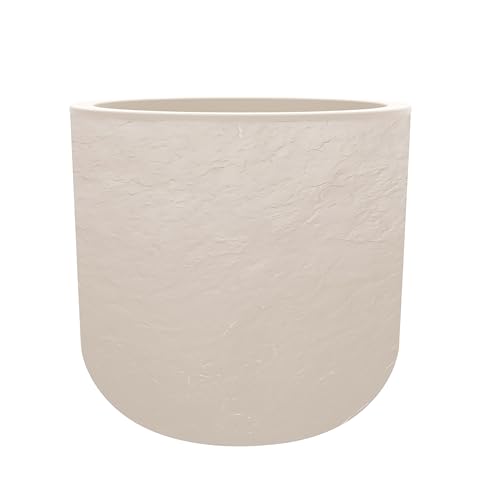 EDA - Pot Rond 40 cm Volcania'Up 32,5 L - Décor Imitation Pierre - Simple Paroi avec Colerette Trompe-l'oeil - Zone de Rétention d'eau pour Limiter l'Arrosage - Ø 38,5 x H.36,8 cm - Beige Calcaire