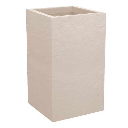 EDA - Pot Carré Haut Volcania'Up 36 L - Décor Imitation Pierre - Simple Paroi avec Colerette Trompe-l'oeil - Zone de Rétention d'eau pour Limiter l'Arrosage - 29,5 x 29,5 x 49,5 cm - Beige Calcaire