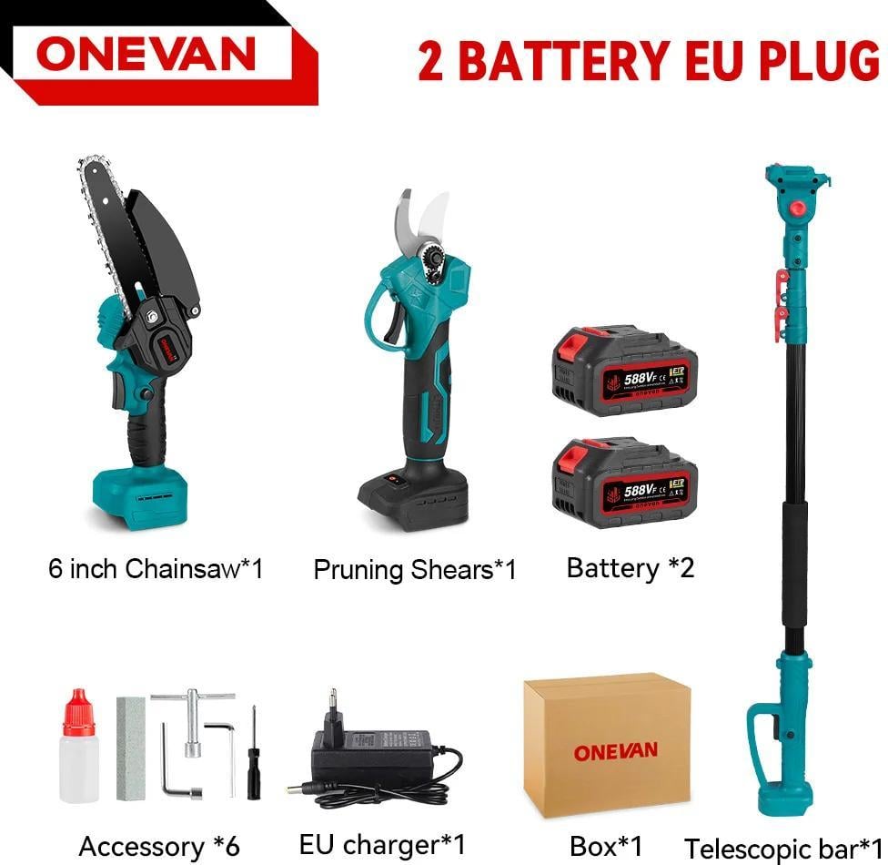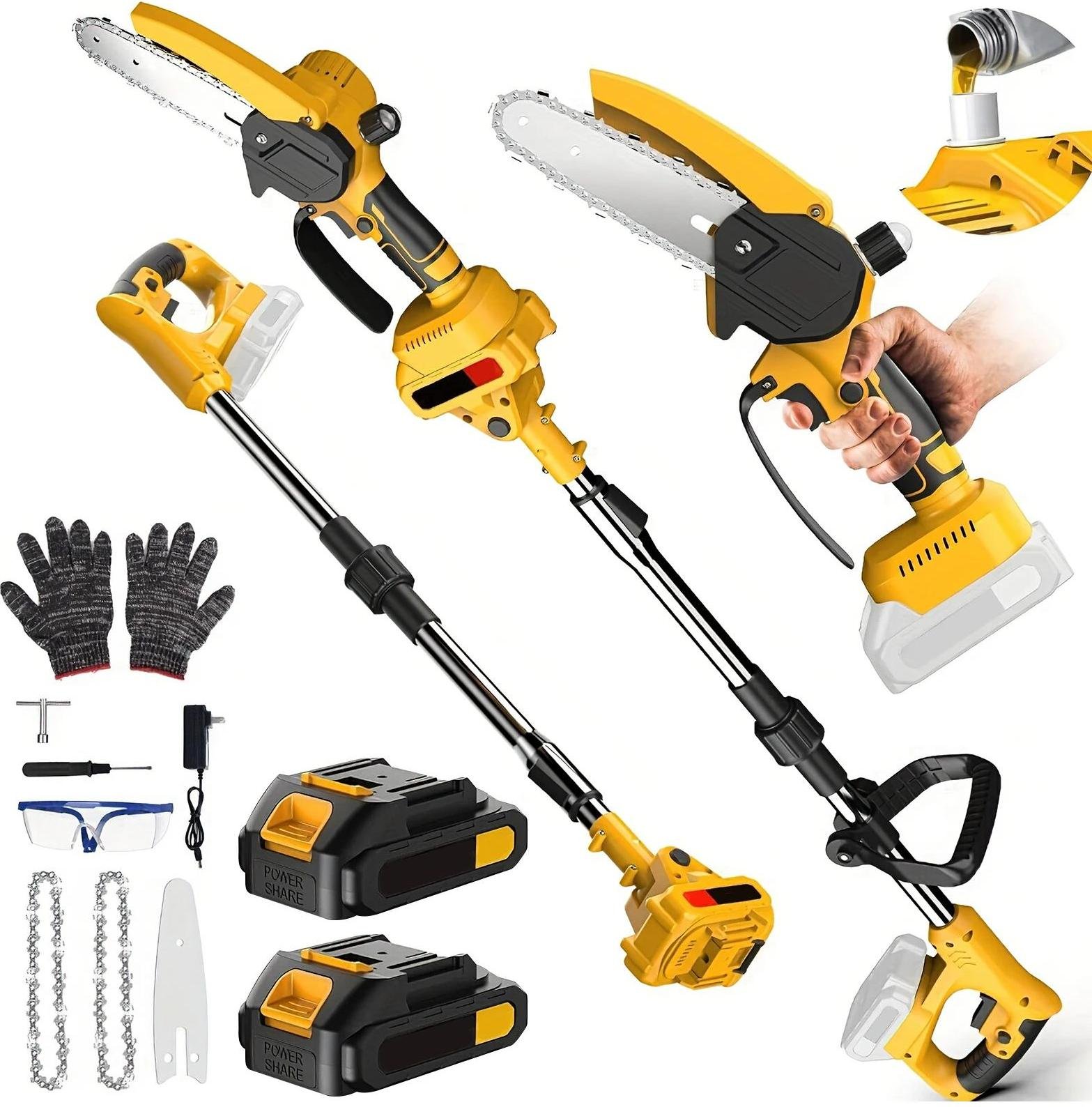 Tronçonneuse sans fil avec perche télescopique - Ébrancheur 3-en-1 - Moteur sans balais - Sans fil - Avec 2 batteries - Or
