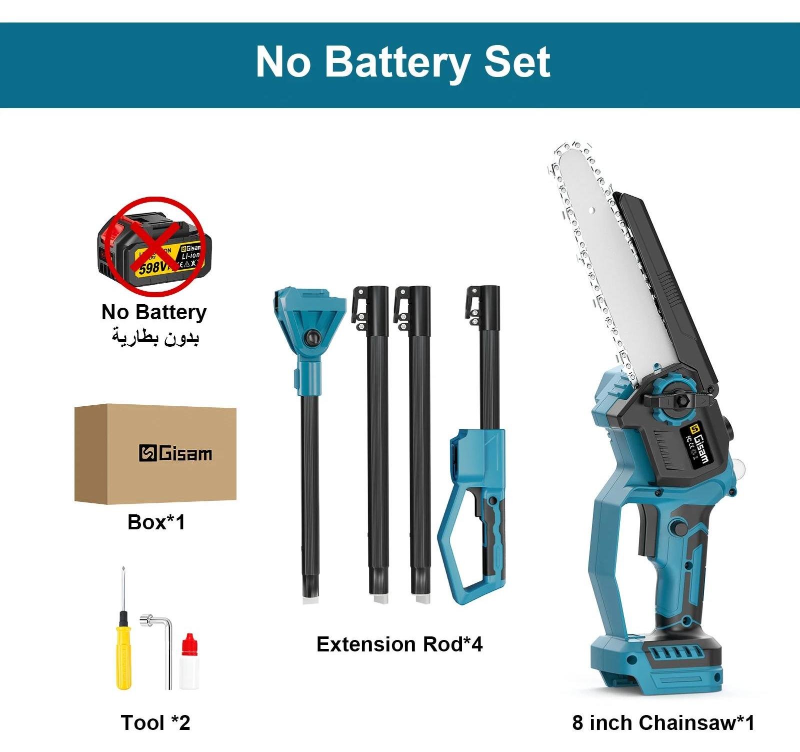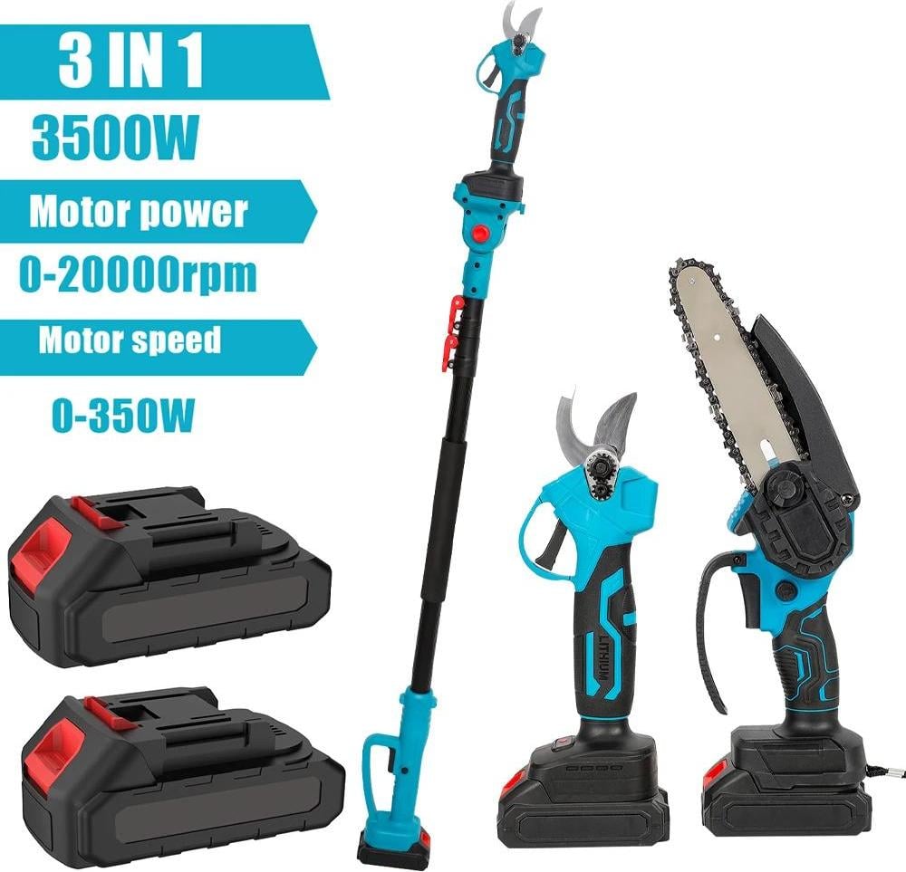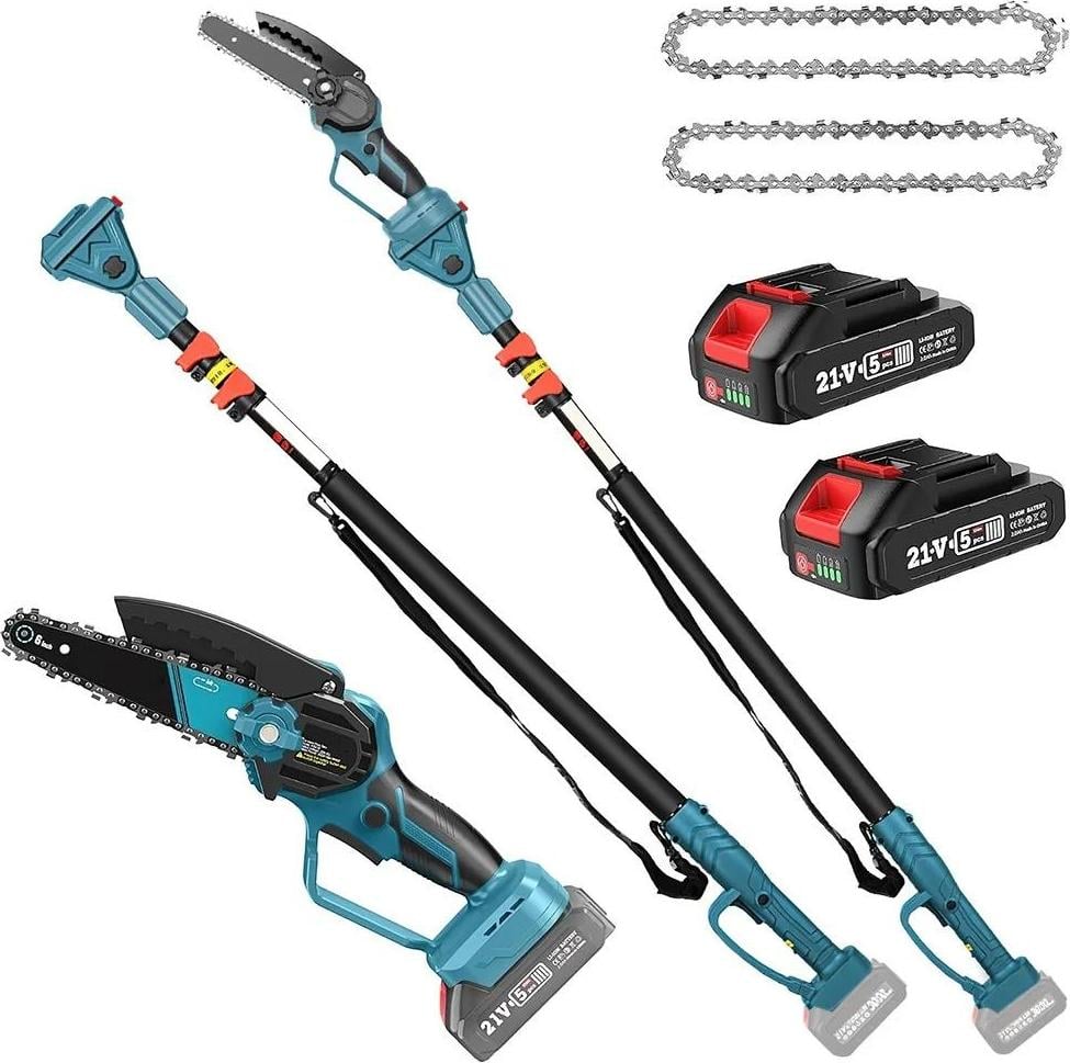 Ébrancheur 2-en-1 - Mini-tronçonneuse de 15 cm avec perche télescopique - Sans fil - Batterie incluse - Chargeur 220 V (UE) - CE - Bleu