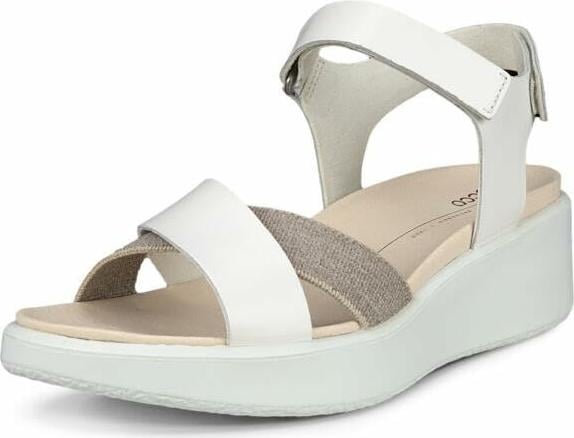 ECCO Sandales Flowt compensées de luxe à bande croisée pour femme, blanc, 6/6.5 UK