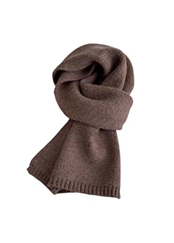 SERUMY Écharpes Tricotées Femmes d'automne d'hiver Couleur Solide Écharpe Mince Nuerchief Doux Blanc Brun Blanc Chaud en Laine en Laine De Laine Pashmina Châle-Chocolate