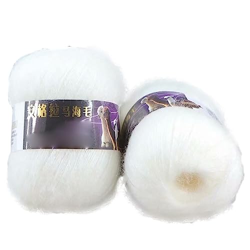 Zerodis Fil Angora, Fil de Laine Angora Mohair Doux pour Tricoter Un Pull écharpe Bricolage(01 White, 12)