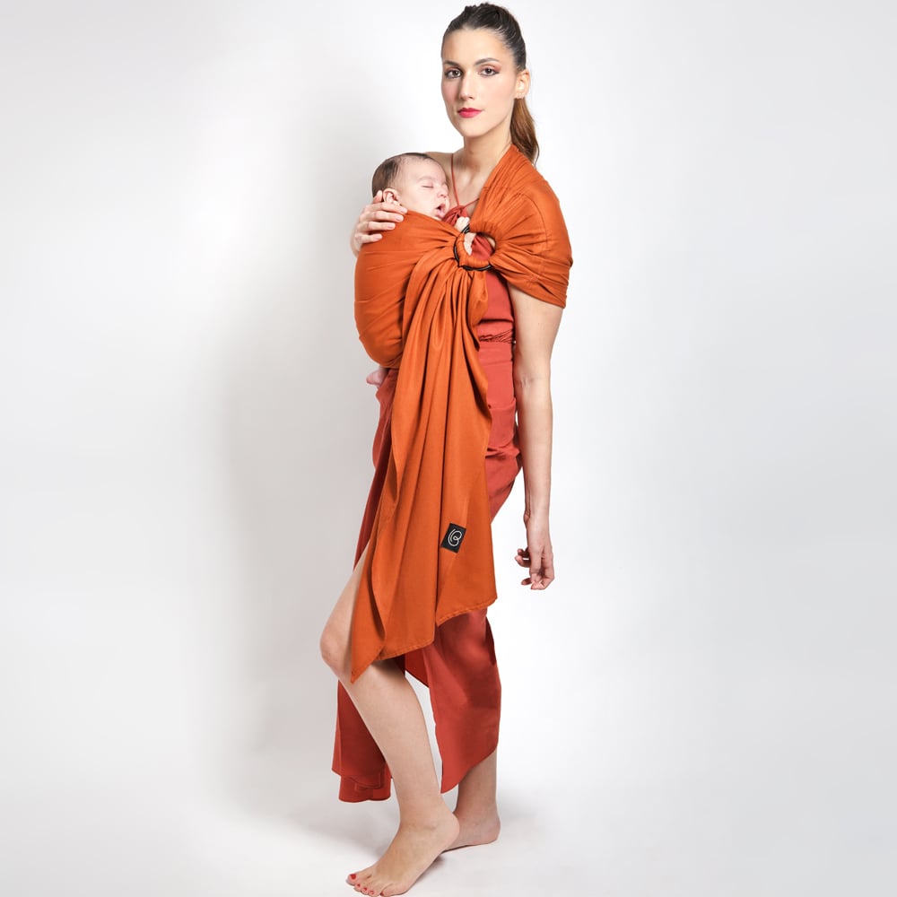 Echarpe de portage Sling sans noeud tissé en coton bio terracotta