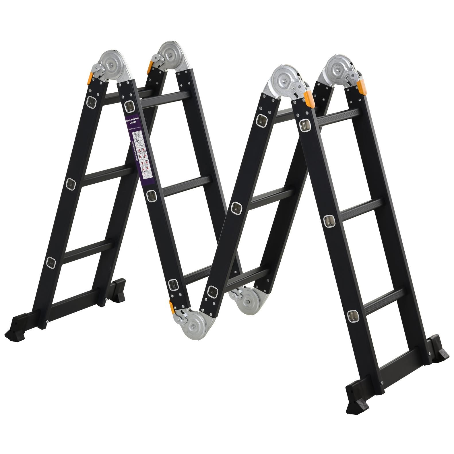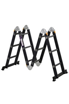 Echelle aluminium pliable multifonction 5 positions 3,7 m 12 échelons certification NF EN131 charge max. 150 Kg noir
